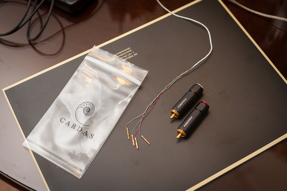 Mans labs paziņa, audio un vinila entuziasts, Marks atsūtīja dažus attēlus, kurus nolēmu ievietot blogā. Runa iet par Marka vēlmi uzlabot sava, nesen iegādātā, Thorens plašu atskaņotāja skanējumu, nomainot tonarma vadu. Vispirms bija doma nomainīt vadu no tonarma pēdas līdz fono korektoram, bet tad tapis radikālāks lēmums- izveidot vienu kabeli no kartridža izejas līdz fono korektoram.